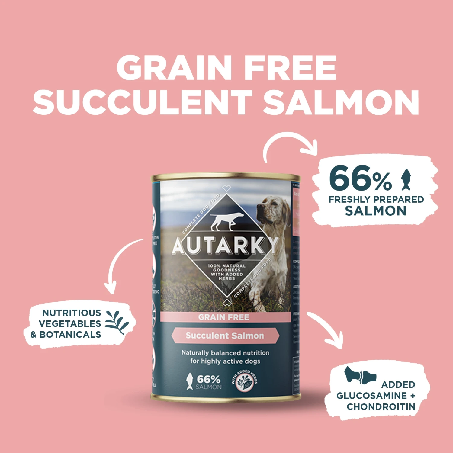 Does your dog prefer a wet diet packed with 100% natural goodness? Our new complete wet diet, developed for adult working dogs, is enhanced with quality ingredients including freshly prepared salmon, nutritious vegetables along with key botanicals and herbs. This diet is grain-free, naturally hypoallergenic and benefits from wholesome ingredients, no artificial colours, flavours or preservatives plus the additional support of a joint package.