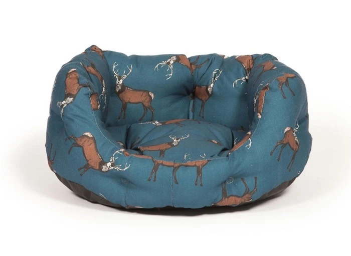 Reflecting the colours of a forest night with a striking midnight blue background and stag print, this deluxe slumber bed forms part of the Danish Design Woodland Range. Using iconic and quirky prints, this bed offers not only eye-catching design , but also optimum comfort, made with 100% cotton fabric. The wide range of sizes available ensures that finding the right size for your pet has never been easier.