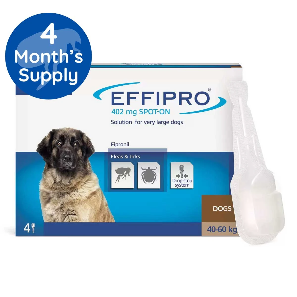 Effipro is an effective treatment and prevention of fleas and ticks on dogs. It is based on a new formula containing Fipronil, an insecticide and acaricide belonging to the phenylpyrazole family.