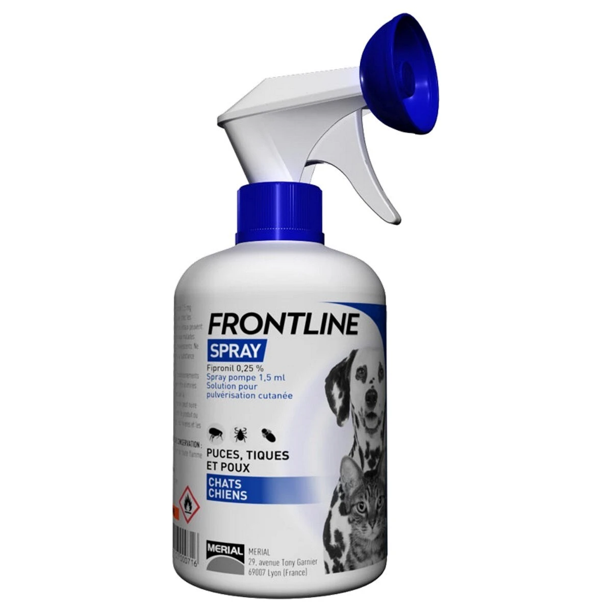 FRONTLINE Spray is a cutaneous spray solution containing 0.25% w/v fipronil, a member of the phenylpyrazole group of compounds, for external spray application.