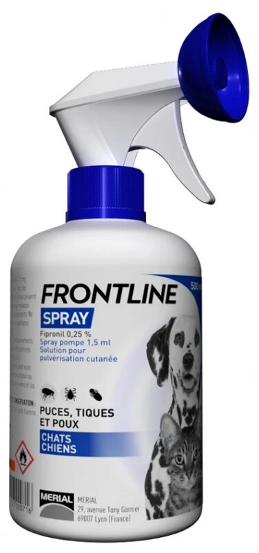 FRONTLINE Spray is a cutaneous spray solution containing 0.25% w/v fipronil, a member of the phenylpyrazole group of compounds, for external spray application.