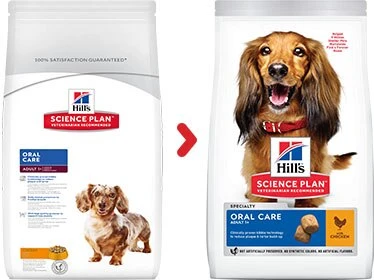 Hill’s™ Science Plan™ Canine Adult Oral Care Chicken is clinically proven to reduce plaque and tartar. With antioxidants and advanced oral care technology.