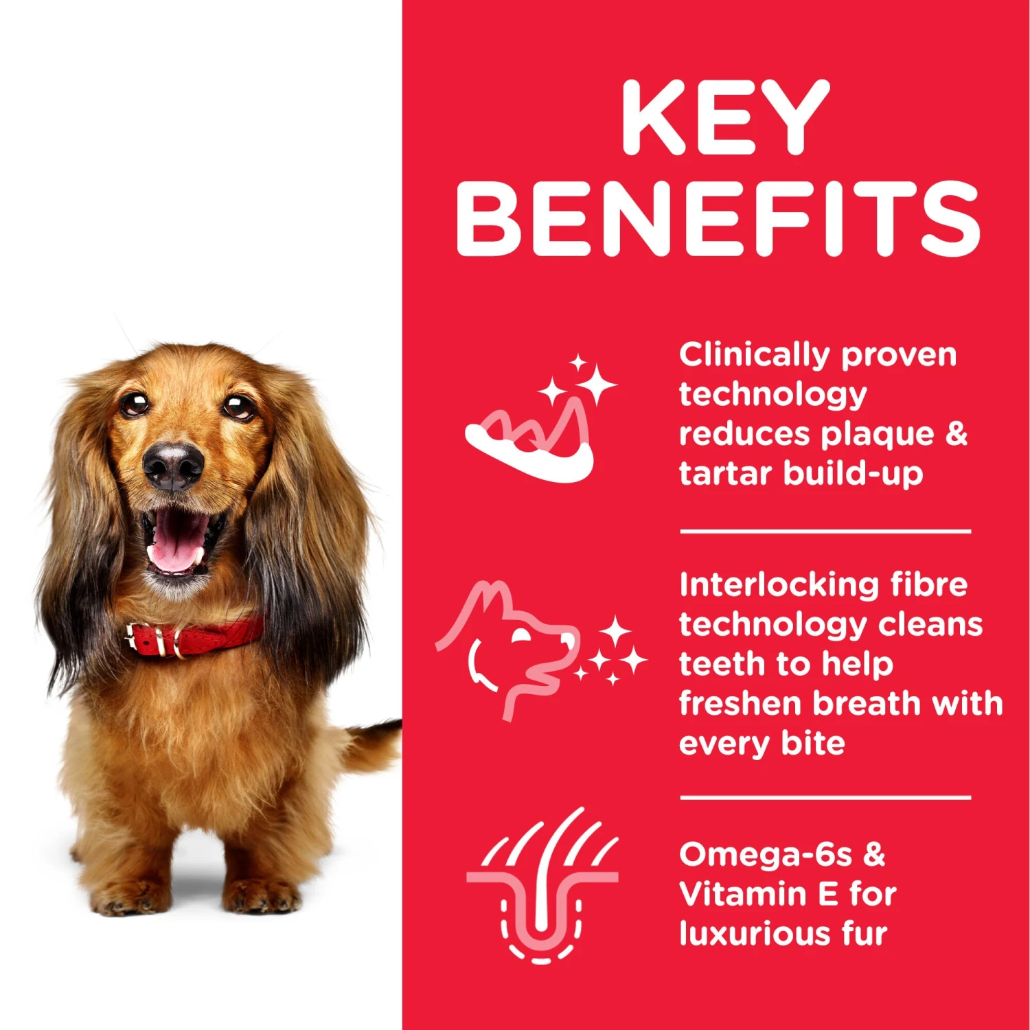 Clinically proven kibble technology to reduce plaque and tartar.