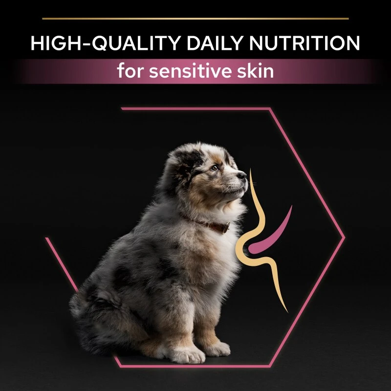 Suitable for: All puppies with sensitive skin and/or digestive system as a complete and balanced diet to support their growth into adulthood.