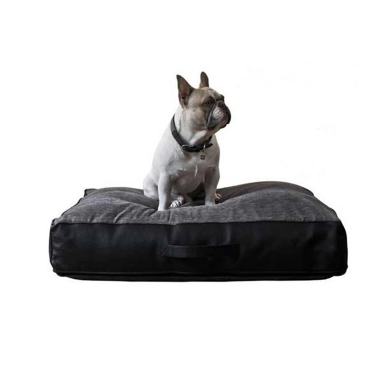 This Ralph & Co faux leather sided bed with upholstered fabric top is a cosy choice for your pet. The black and gun metal colour scheme ensures a modern and stylish feel.